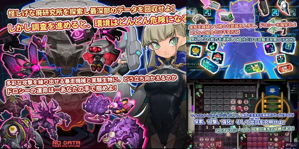在这个受到科学的高速发展和数不清战争洗礼的世界里,仍然存在着持续活动的人类组织。名为“VMWN”的科学家联合机构正是其中之一。在过去的战火中丢失的技术进行回收和管理,并以此为使命和自身规则的组织。面对时间的流逝,庞大的组织也无能为力。在众多废弃研究所散布的世界里,封印着禁断技术的地方或许才是这个时代的路标吧。想在职场上步步高升的研究员多萝西,为了职业生涯可以接受任何无理的任务哦?使用最新锐的研究成果,取得超神秘的遗产技术!古代的东西到底是不是一种可靠的技术呢?这也是一个谜。