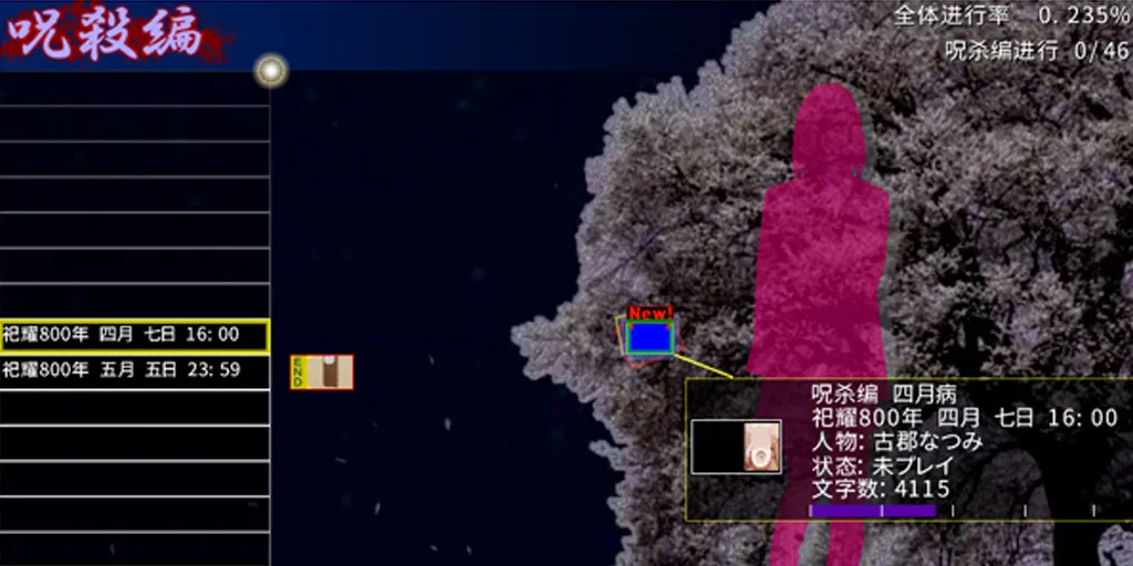 死月妖花~四月八日~是以现代日本为背景的一款恐怖视觉小说游戏,本作围绕日本三名女高中生与杀人魔对抗的主线展开,玩家在游戏中将跟随古郡夏实、新村春花、五岛绘梨奈等人,逐步揭露隐藏在事件背后的秘密与真相。同时游戏内还设计了多个剧情篇章,长达240w的文本,丰富的人物角色设定,以及海量的背景插图,致力于给玩家带来更好地游戏体验。而在玩法上,游戏则结合视觉小说与冒险元素,提供沉浸式剧本阅读体验,玩家将通过浏览文字来推动剧情发展。总游戏时间长达50~120小时!
