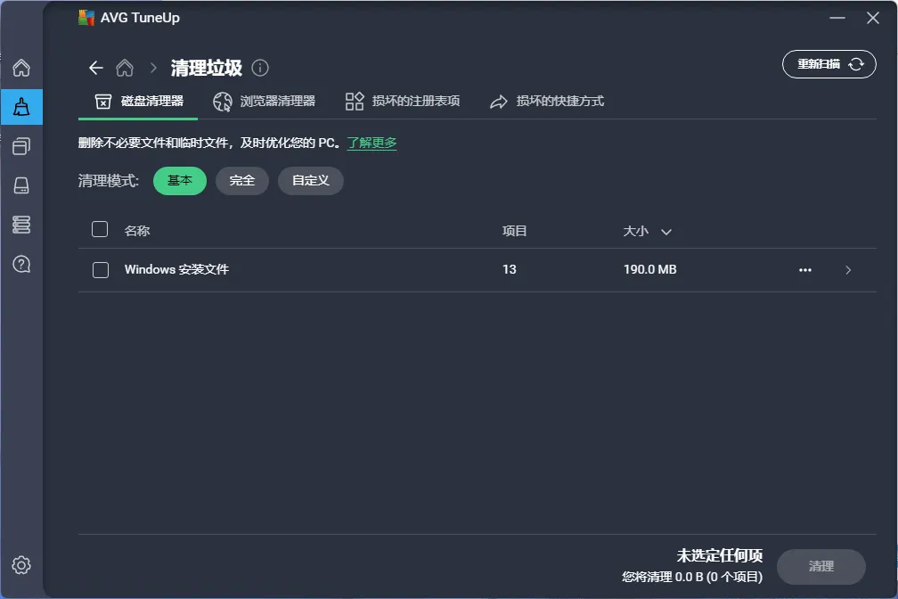 16、AVG TuneUp 2020一键清理;